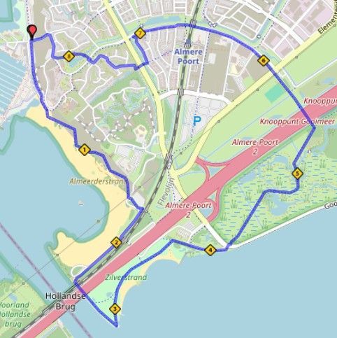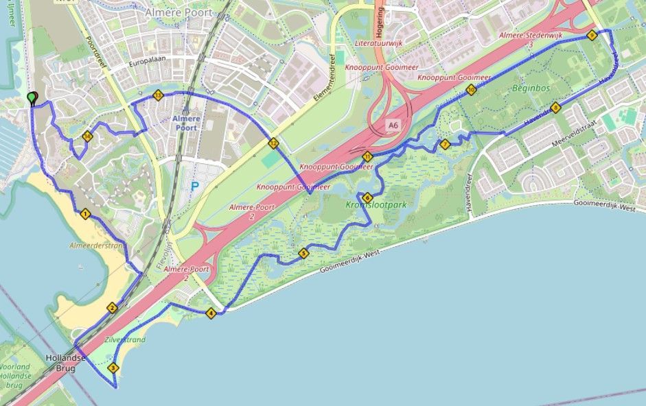 We hebben twee mooie routes van 8 en 15 km door Duin en Kromslootpark bij Almere Poort.